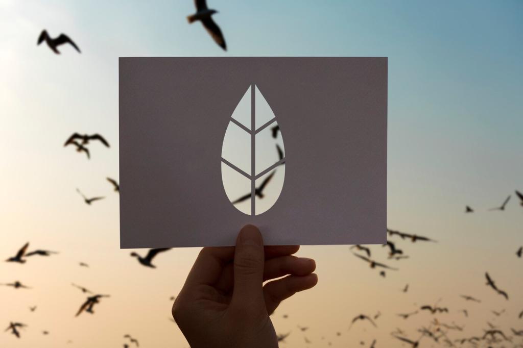 Regelmäßig staubwischen mit weichen Tüchern, punktuelle Reinigung statt Vollwäsche und gezielter Schutz vor Feuchte, Hitze und UV-Licht bilden die Basis nachhaltiger Pflege. Kleine Handgriffe verhindern großen Verschleiß und sparen langfristig Ressourcen, Geld und Nerven.